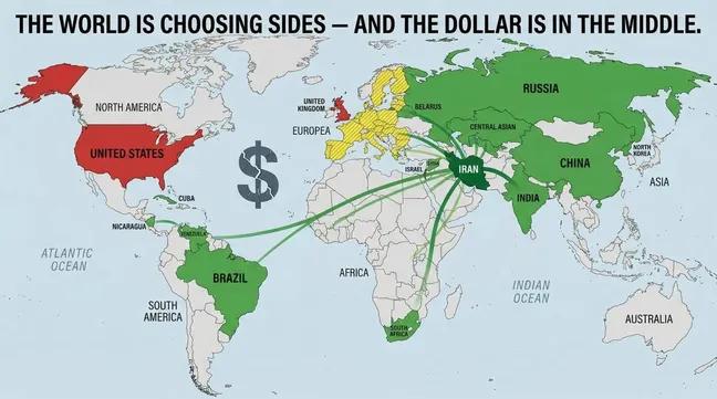 That system has underpinned US financial dominance since 1974. If it cracks, BRICS surges, dollar demand collapses, and America’s $34T debt becomes impossible to fund easily.